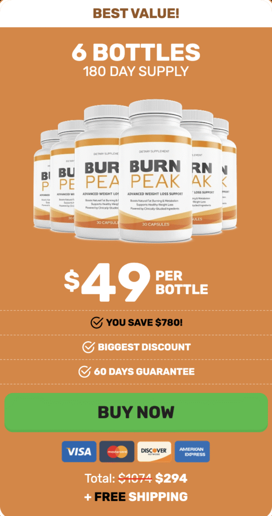 If you’re serious about boosting metabolism, burning fat naturally, increasing energy, and improving overall vitality, this is your chance to secure BurnPeak at the best available price—with a 60-day money-back guarantee to try it completely risk-free.